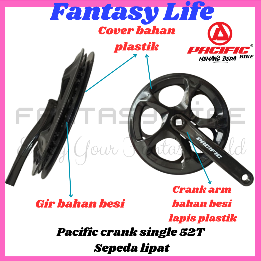 Fantasy Pacific Crank Single Chainring 52T Arm Alloy 170 Mm Sepeda Fixie Lipat