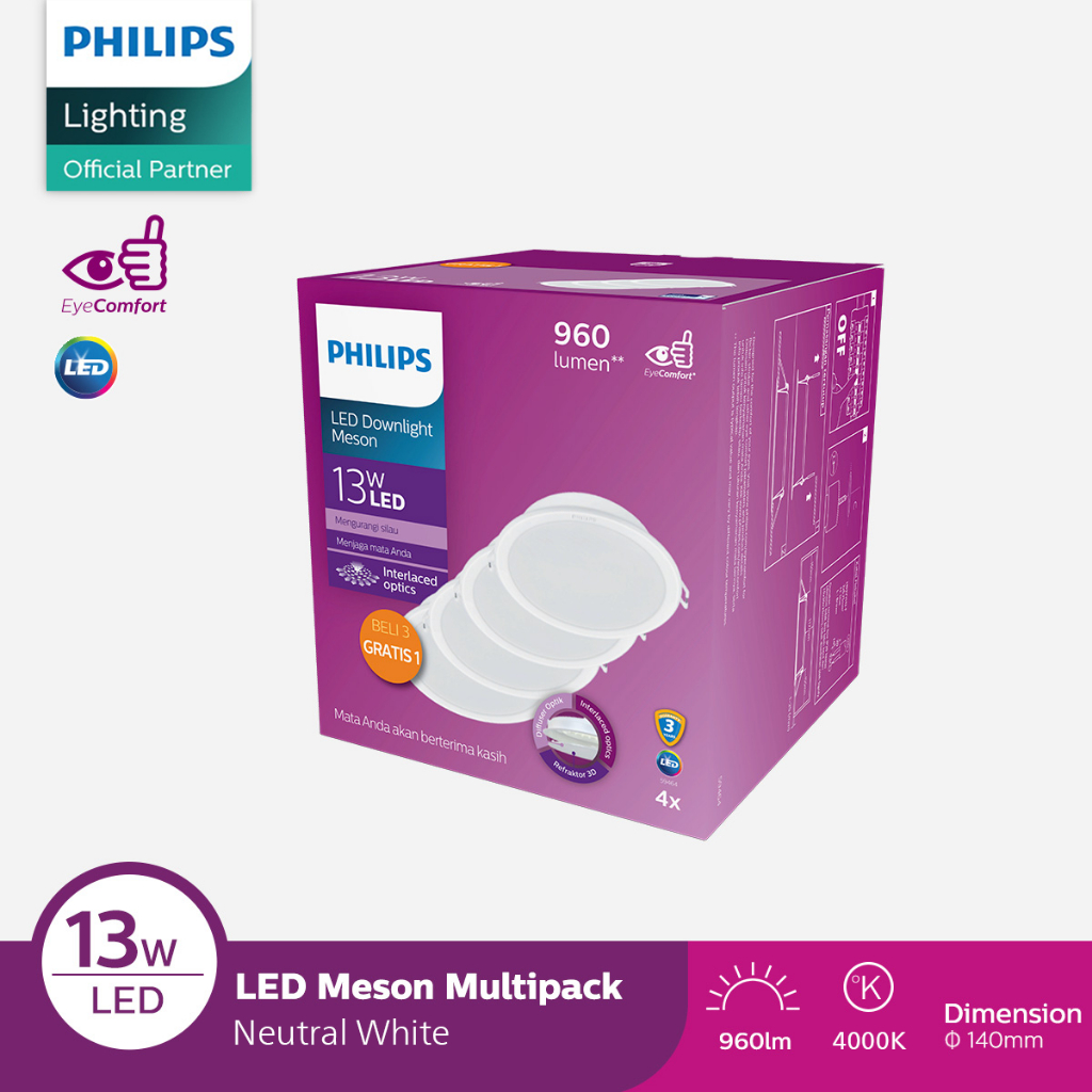 Philips Meson Multipack 125 13W 4000K Paket 3 Gratis 1