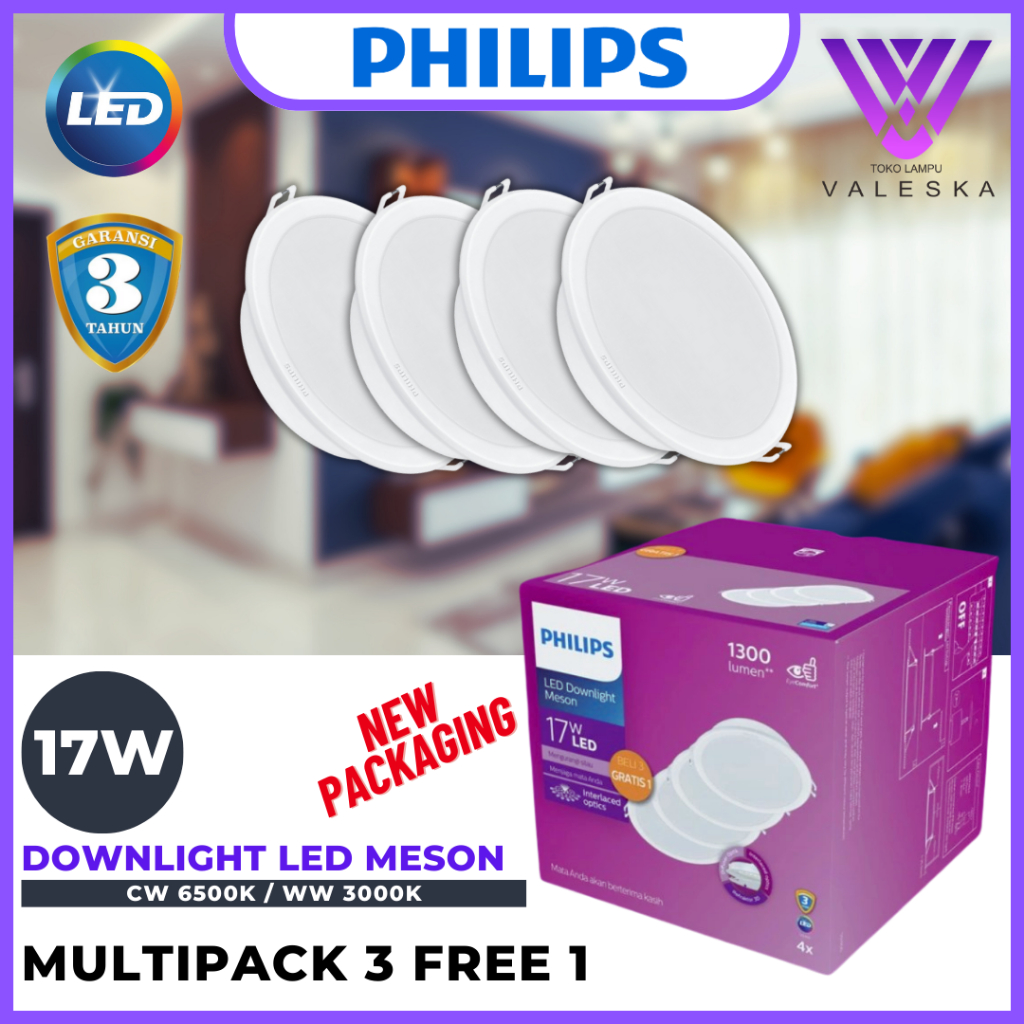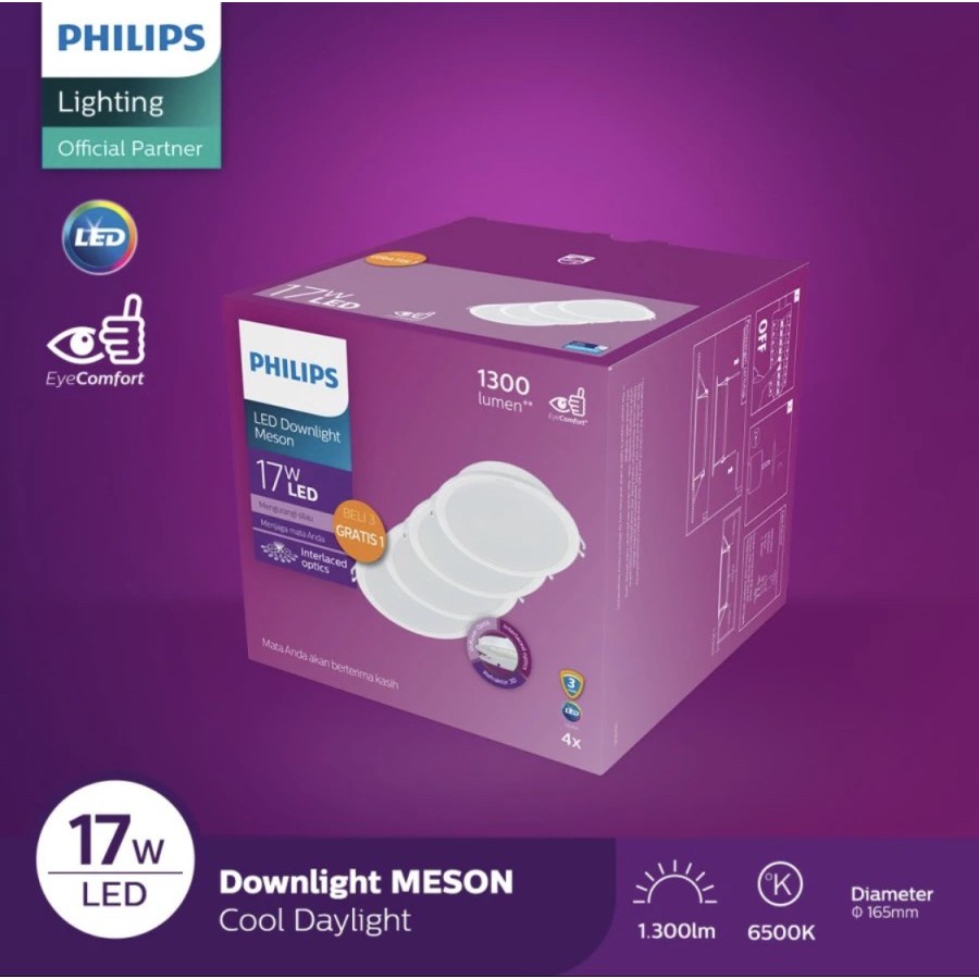 Philips Downlight LED Meson 17W Multipack 3+1 17 Watt Paket Beli 3 Gratis 1 59466 150 17Watt