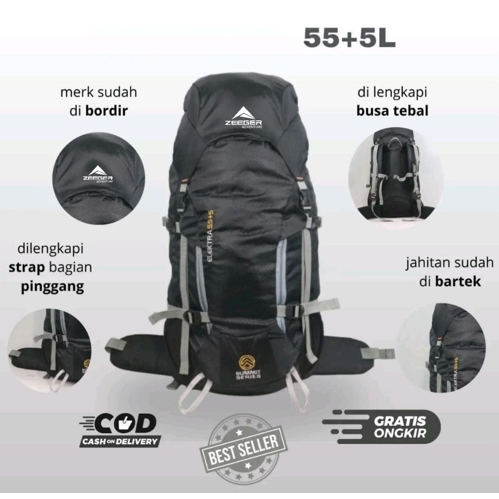 Tas Ransel Gunung 55+5 L # Tas Hiking # Tas Carrier 50L