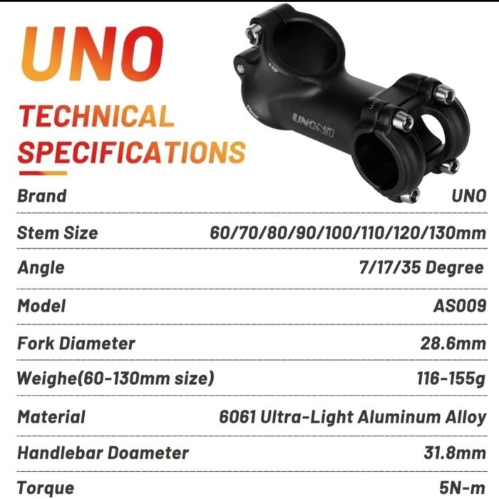 Uno Stem Sepeda 31.8Mm 17 Derajat Handlebar Stem Stang Sepeda Roadbike Mtb