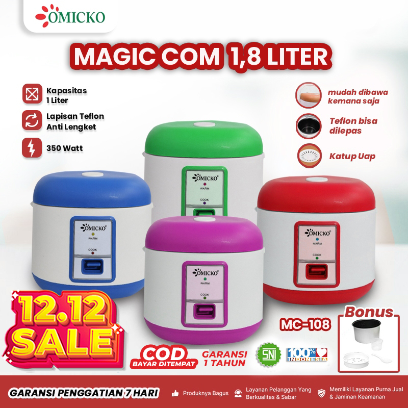 Omicko Rice Cooker 1.8 Liter 3In1 Penanak Nasi /Pengukus Makanan/Penghangat Makanan