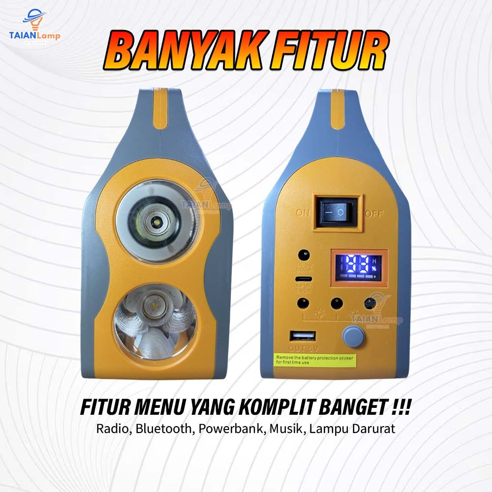 Lampu Portabel Tenaga Surya untuk Berkemah dengan Speaker Bluetooth Radio Bank Daya Darurat