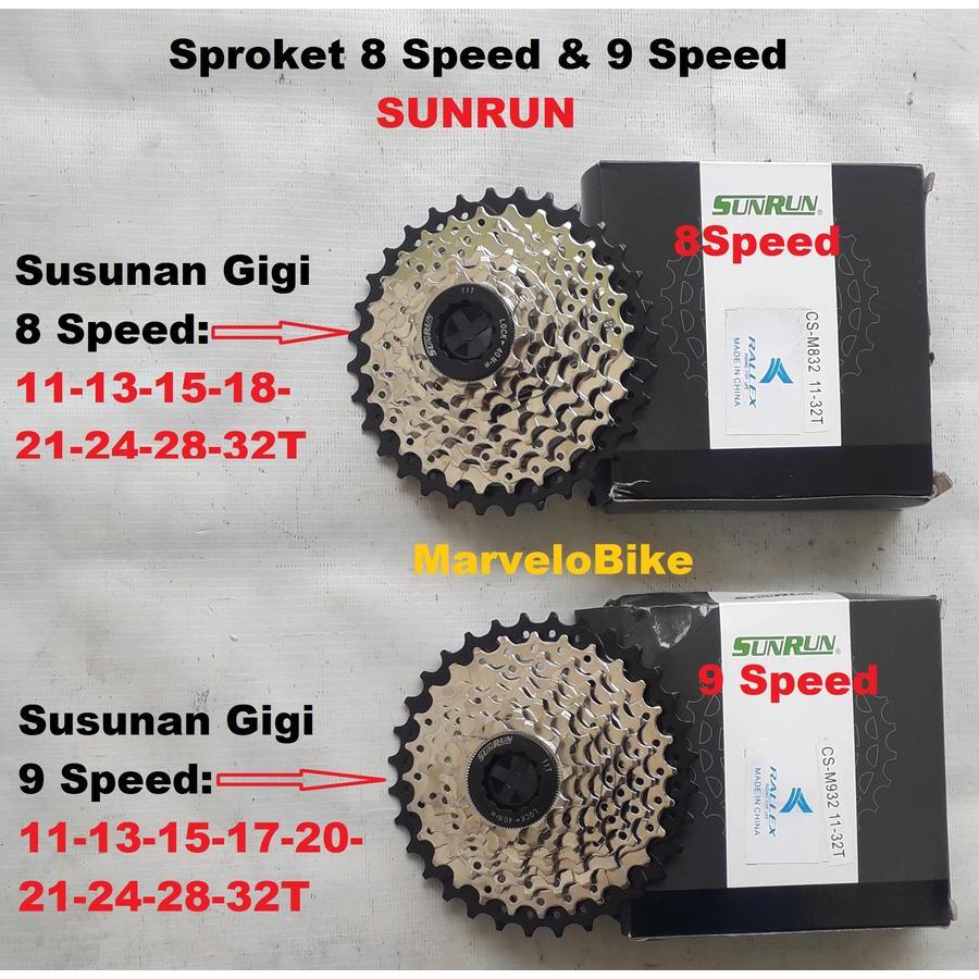 Sproket Cassette Freewheel Susun Sepeda 8Speed 11-32T 9 Speed 11-32T Sunrun Cassette