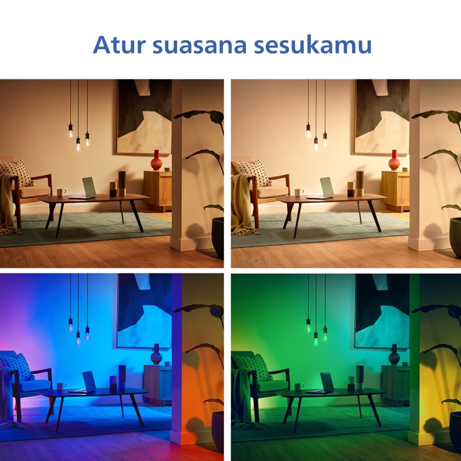 Philips Lampu Bohlam Smart Wifi LED Filamen Spiral 6.3W G95, A60, ST64 Warna