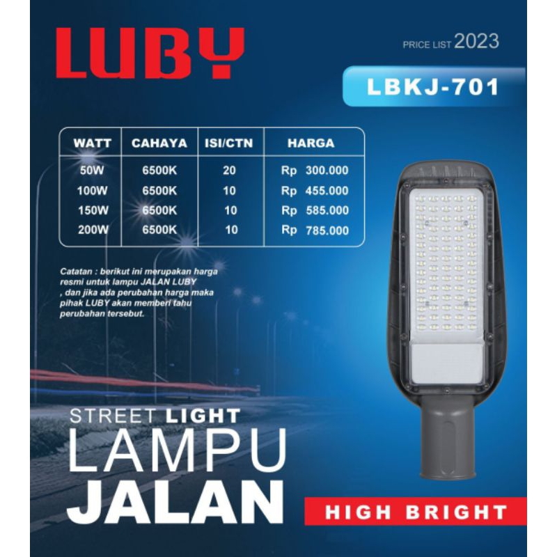 LUBY Lampu Jalan PJU LED 50W & 100W Street Light High Bright LBKJ701 Cahaya Putih TERANG BERKUALITAS