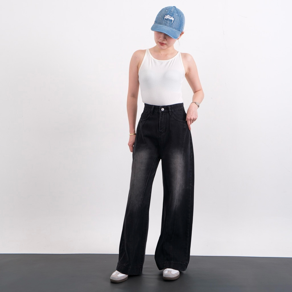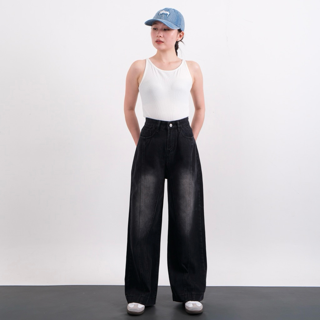 Highwaist Baggy Straight Jeans Loose Jeans Kulot Jeans Wanita Highwaist Celana Panjang Jeans