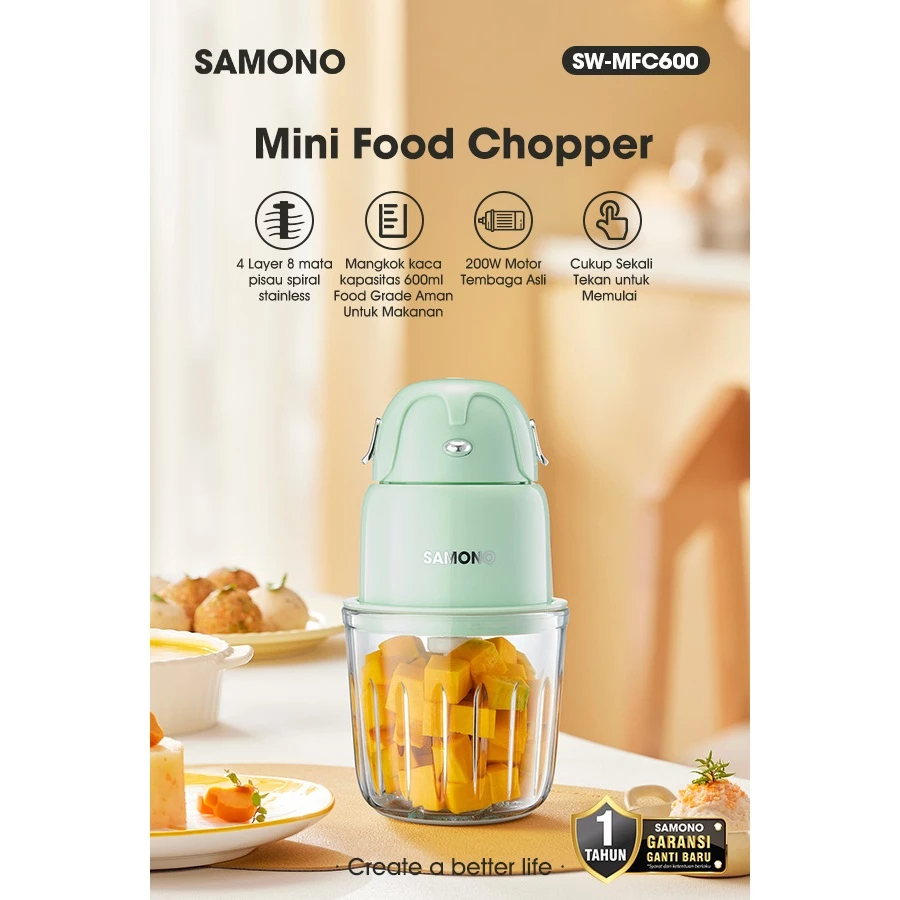 Samono Food Chopper 600Ml Mpasi Food Grade Mesin Penghalus Daging Serbaguna Mfc600 Garansi 1 Tahun