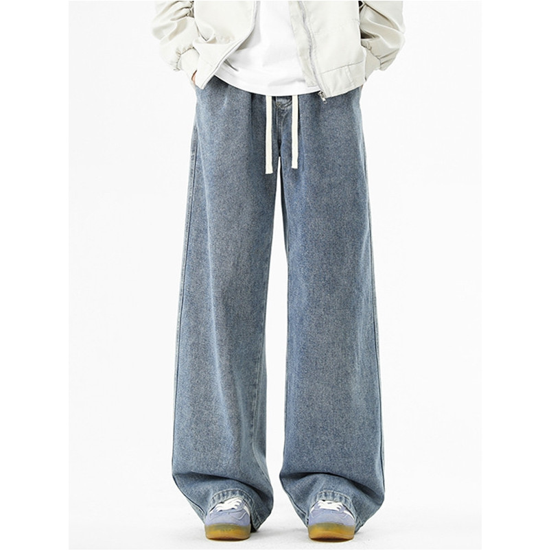 Disai Celana Jeans Unisex Celana Baggy Jeans Gombrong Oversize Dewasa Cowok Longgar Denim Kulot