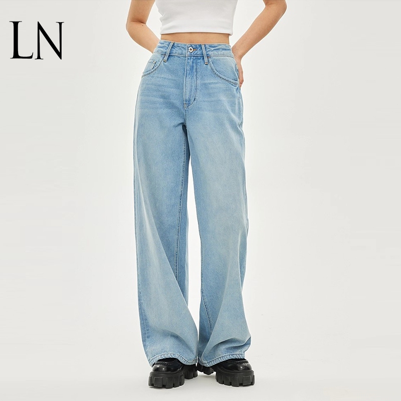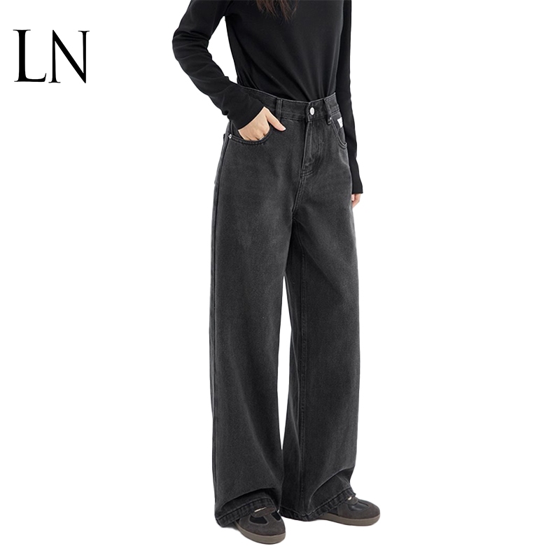 Ln.Rltr Official Store-Celana Jeans Wanita Kekinian Highwaist Kulot Wide Leg Baggy Celana Panjang Jeans Non Stretch Vint