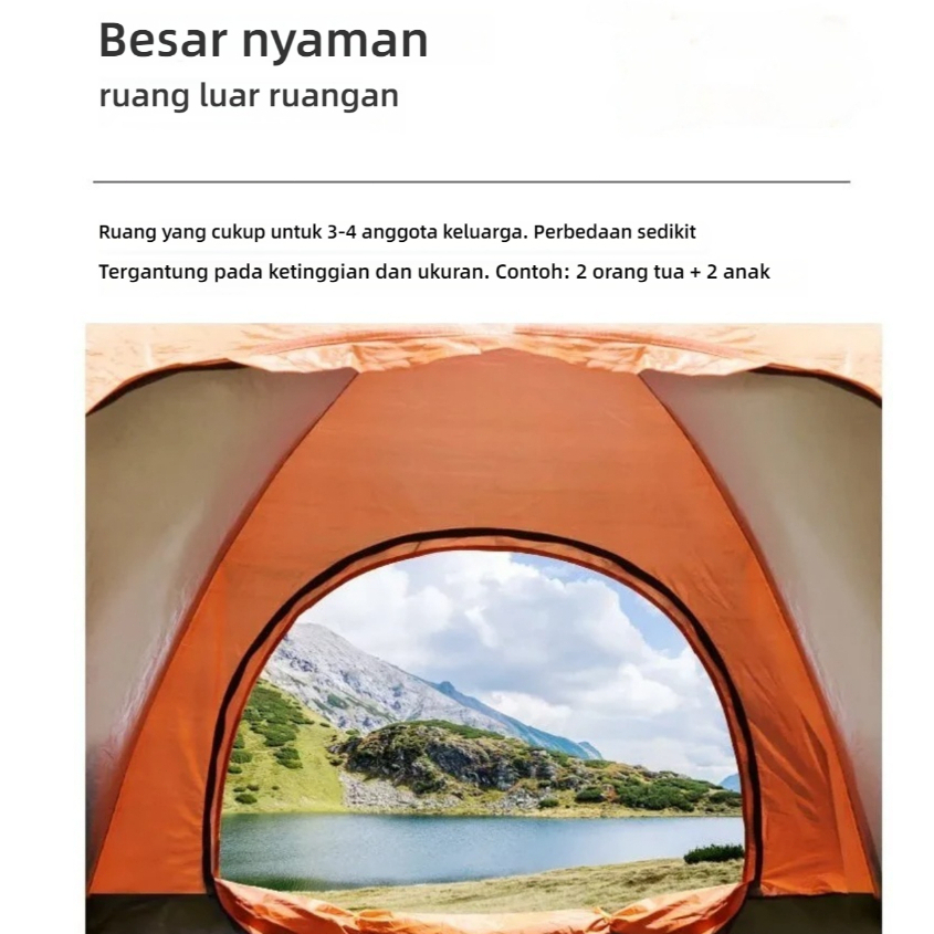 Tenda Camping Otomatis Tahan Air, Tenda Camping door untuk 2-4 Orang, Tenda Gunung Portabel Multilapis Anti Nyamuk, dilengk4ppi dengan Tas Penyimpanan.