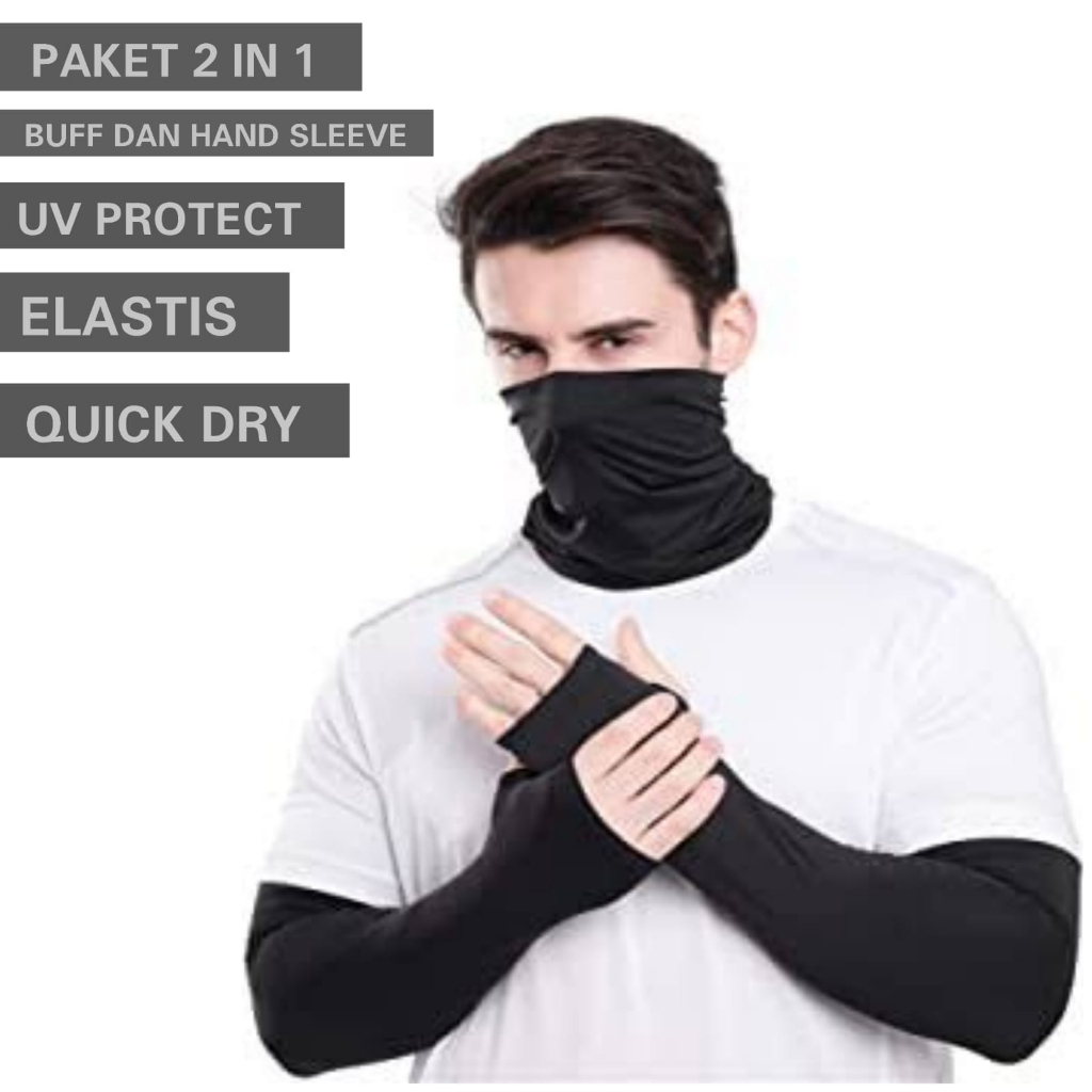 Paket hemat buff masker hiking hand sleeve manset sarung tangan mendaki