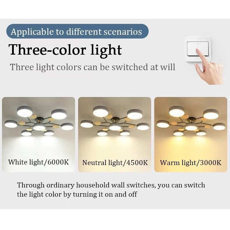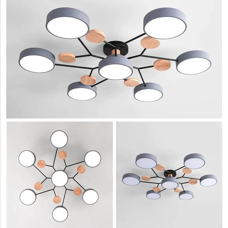 Lampu Plafon LED 3 Warna Bulat Kayu Macaron Minimalis Modern Ceiling Light Untuk Ruang Tamu Kamar Tidur Dekoratif