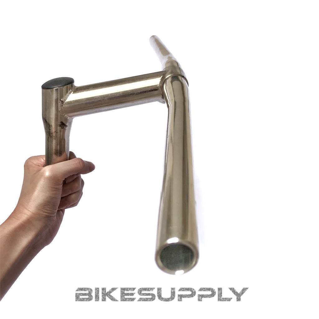 Set Stang Setir Lurus Flatbar & Stem Sepeda Warna Silver Chrome Insert 25.4 Mm Untuk Fork Oversize Os 28.6 Mm Alloy Stee