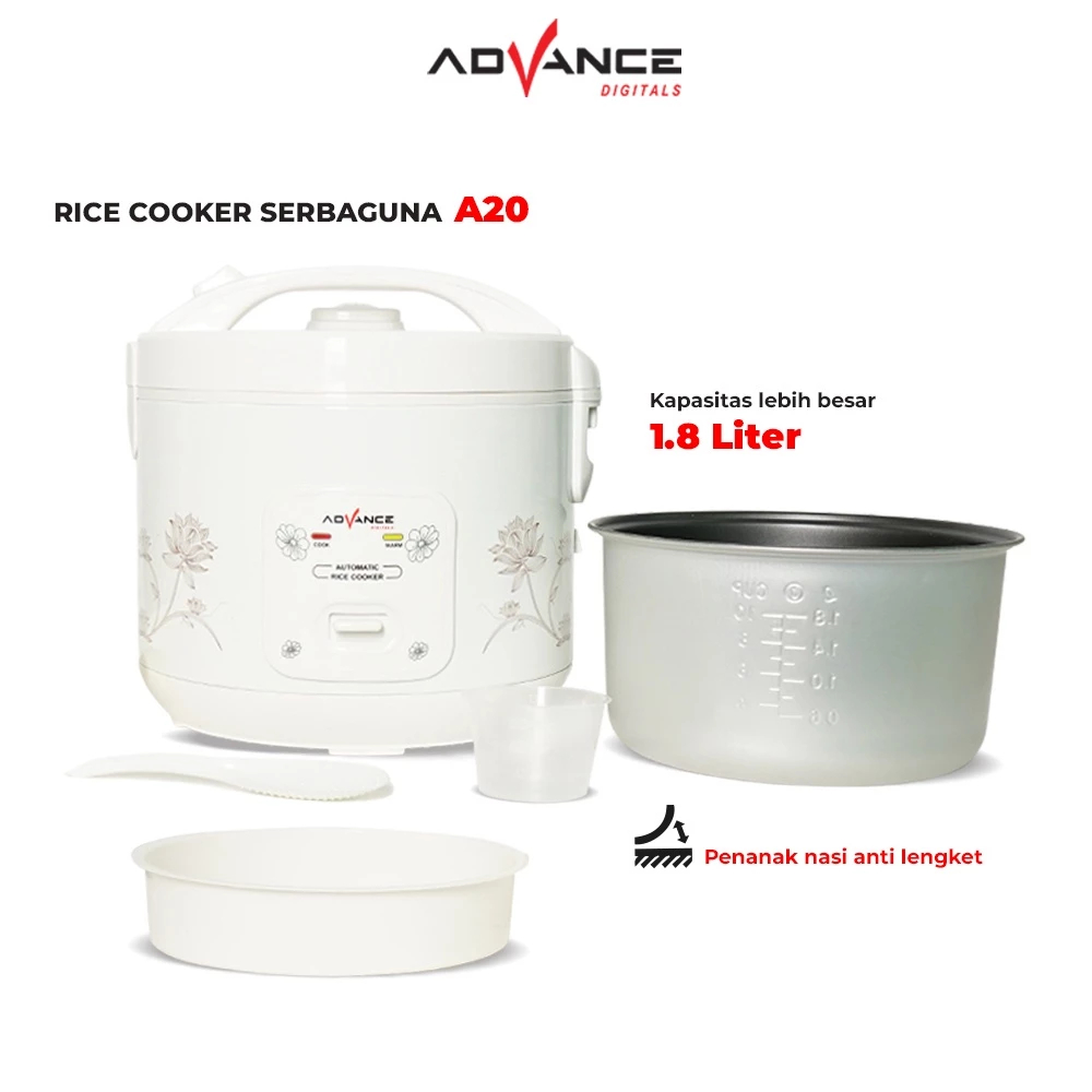 Advance A20 Rice Cooker / Magic Com 1.8 Liter 3 In 1 Bonus Gelas Ukur Dan Sendok Nasi
