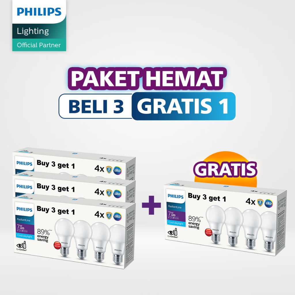 Beli 3 Gratis 1 Philips Lampu Multipack RadiantLine LEDBulb 7W 6500K Putih