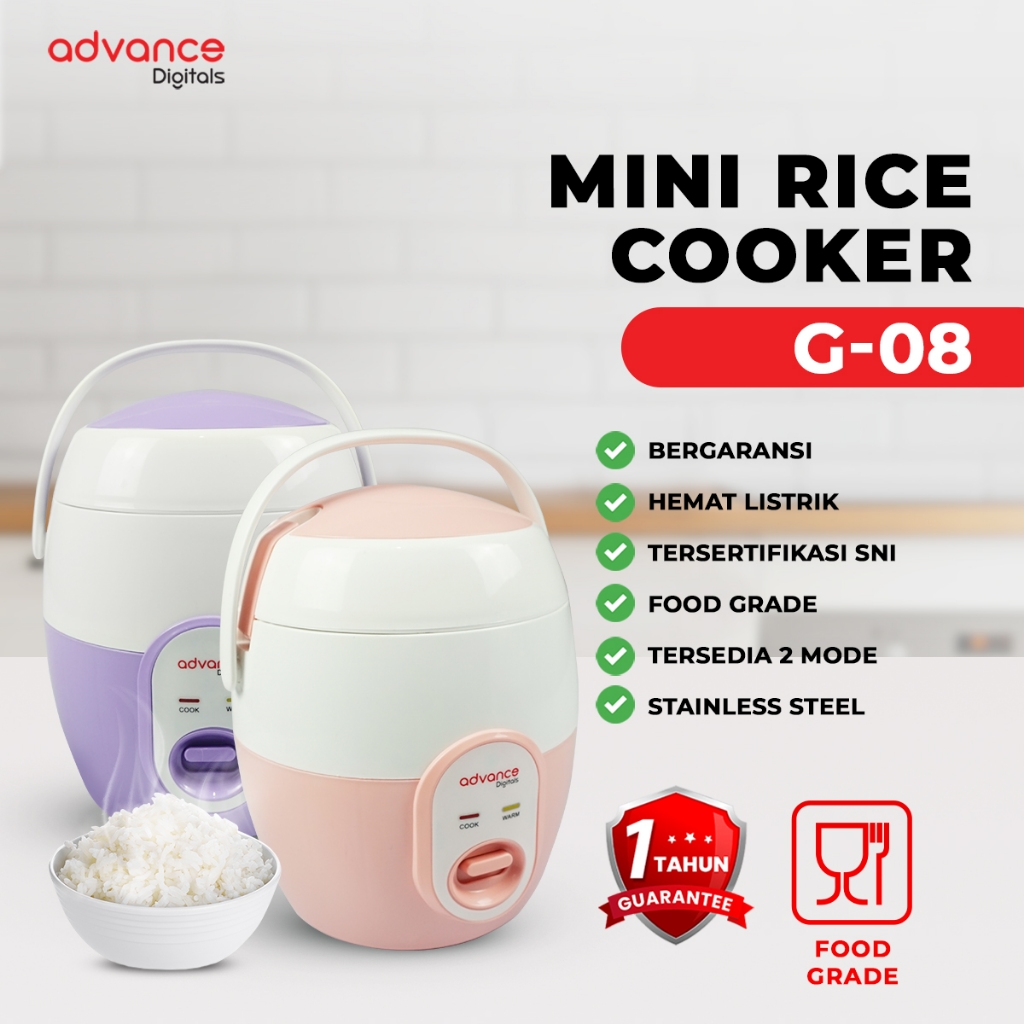Advance G-08 Rice Cooker Travel 1 Liter Anti Lengket 300 Watt Garansi Resmi 1 Tahun
