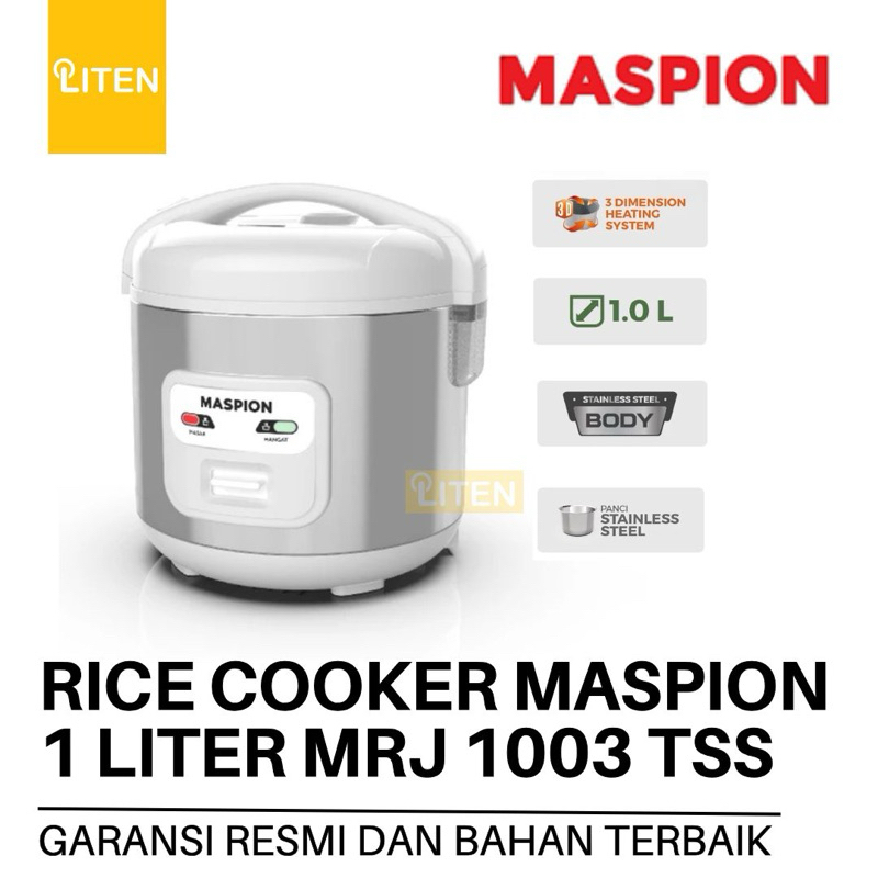 Maspion Mrj 1003 Tss / Rice Cooker Mini 1L 1 Liter Mrj1003 Tss / Magic Com Travel 350 Watt Rendah Garansi Resmi