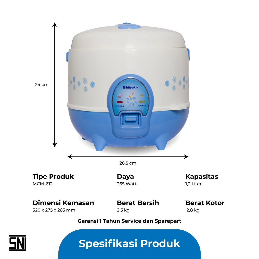 Miyako Mcm612 Magic Com 1.2 Liter Rice Cooker 3In1 Mcm-612