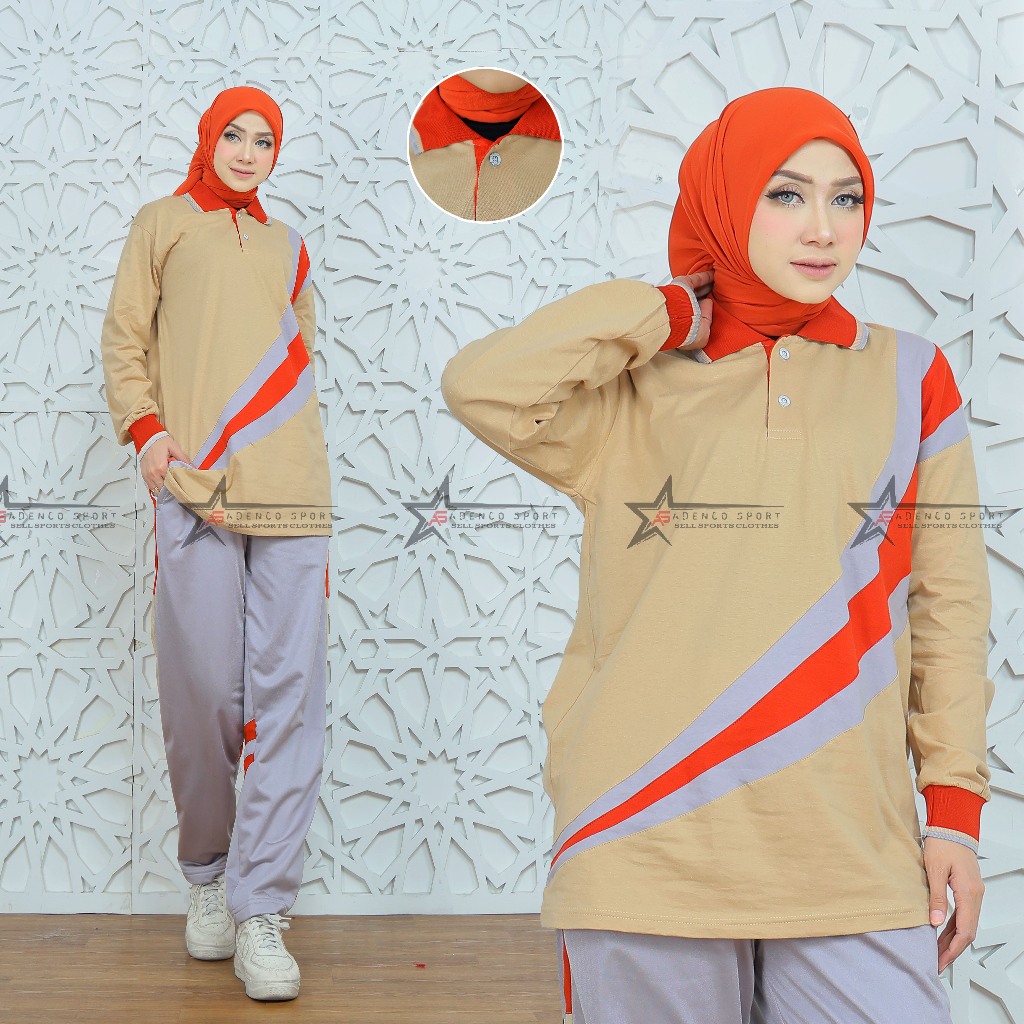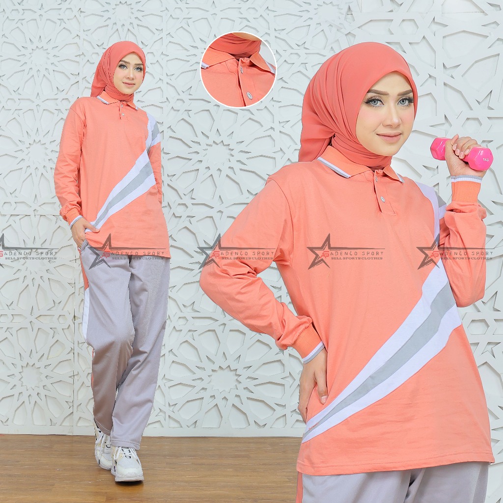 Seragam Kaos Olahraga Senam Lengan Panjang / Setelan Baju Olahraga Wanita Dan Pria Katun Lembut