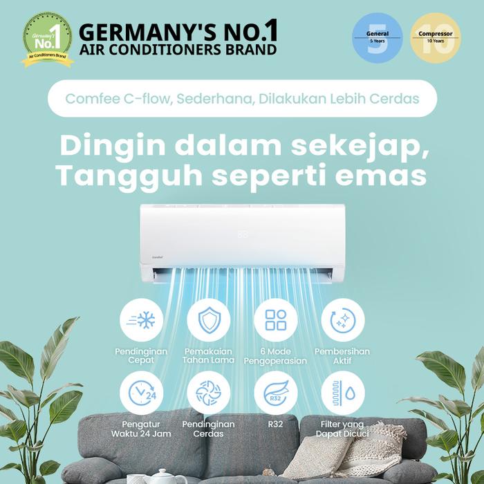 COMFEE C-FLOW AC 1/2 PK STANDARD CFS-05FST Low Watt INDOOR + OUTDOOR ONLY - 0.5 PK Baru FAST COOLING