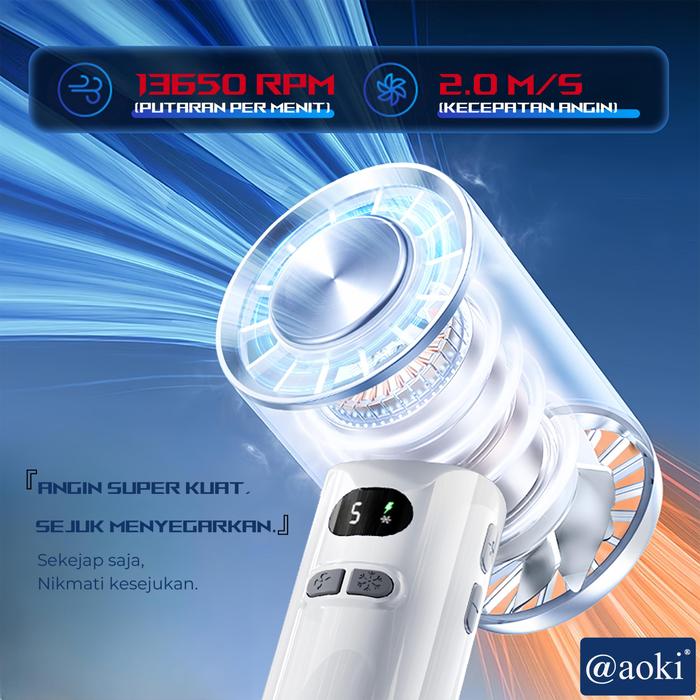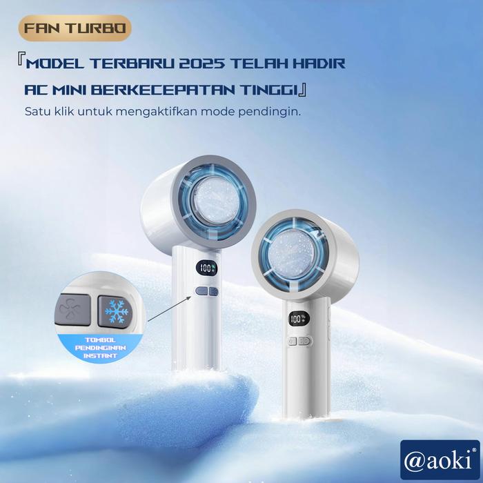 AOKI Kipas Turbo Cool PRO Mini AC Super Sejuk, Angin Kencang, Pengisian Type-C, Layar Digital, Angin
