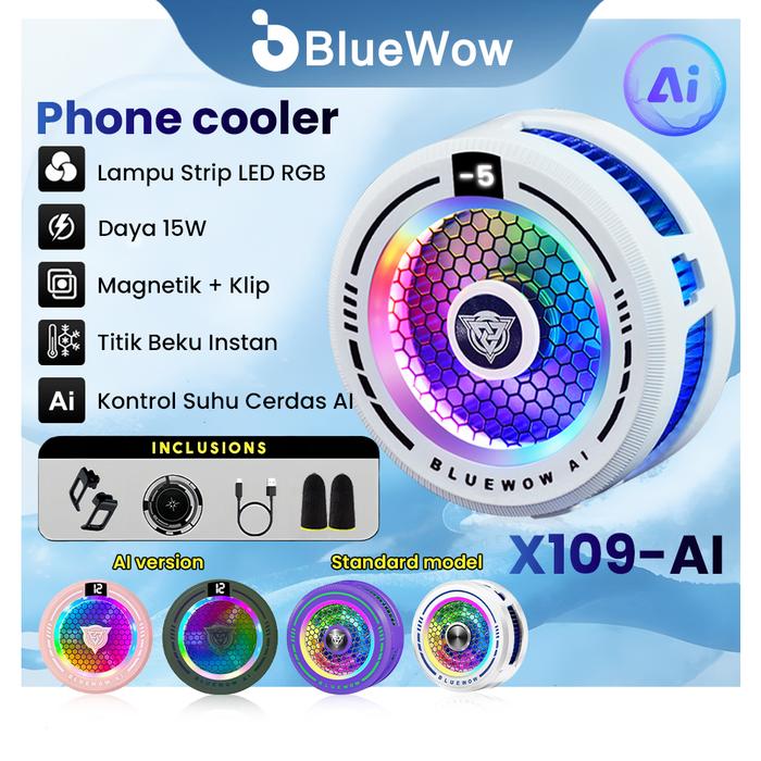 BlueWow Pendingin Ponsel Fancooler X109pro-AI, 15W, dengan Lampu LED RGB, Kontrol Suhu Cerdas