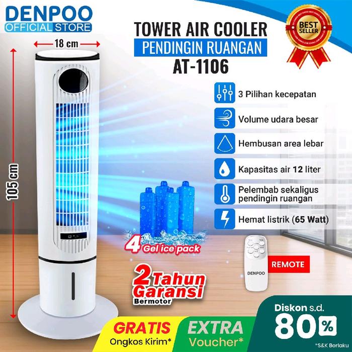 TOWER FAN AIR COOLER DENPOO-KAPASITAS 4 LITER MODEL AT 1106