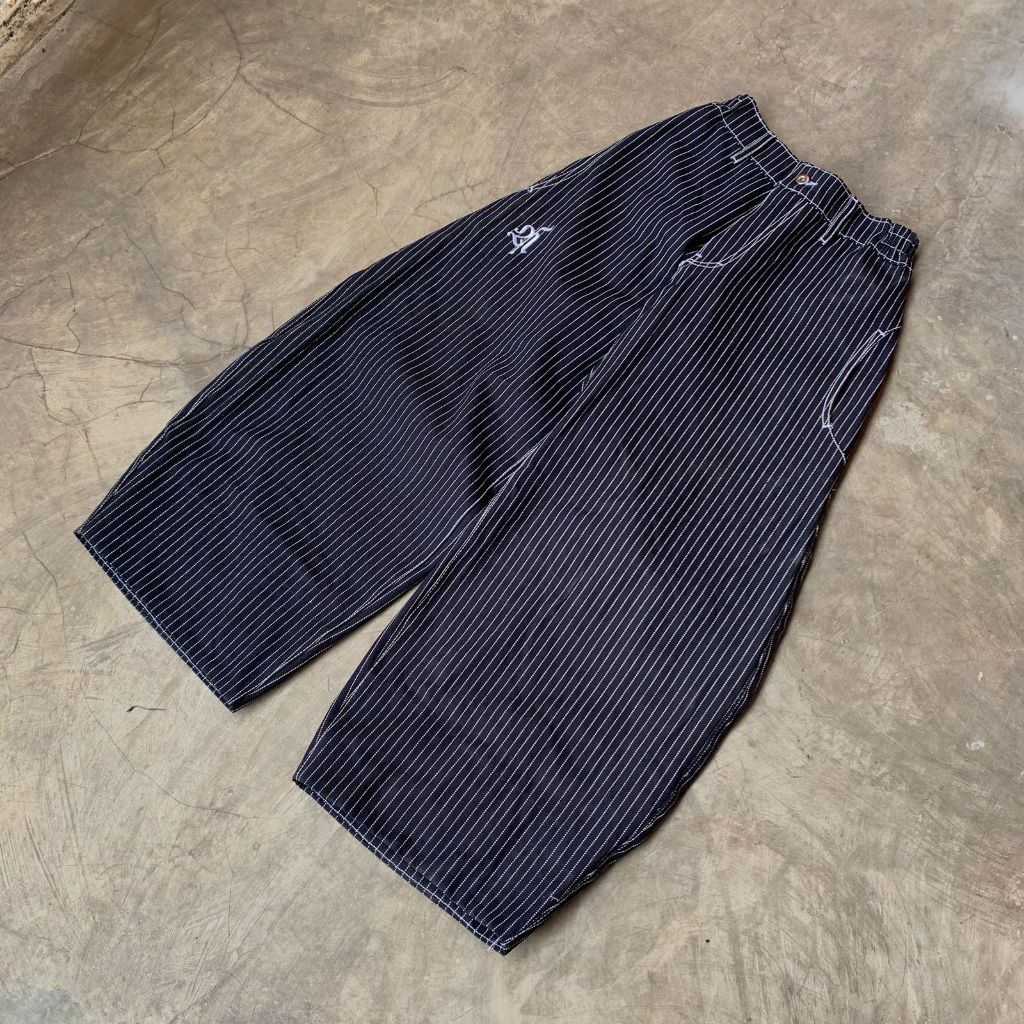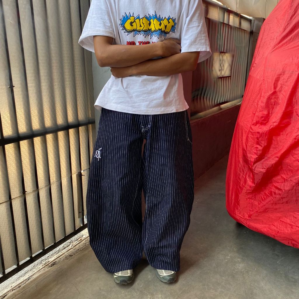 Baggy Pants Celana Baloon Denim Panjang Salur Navy Motif Bordir Notbadclub Spesial Series Artikel