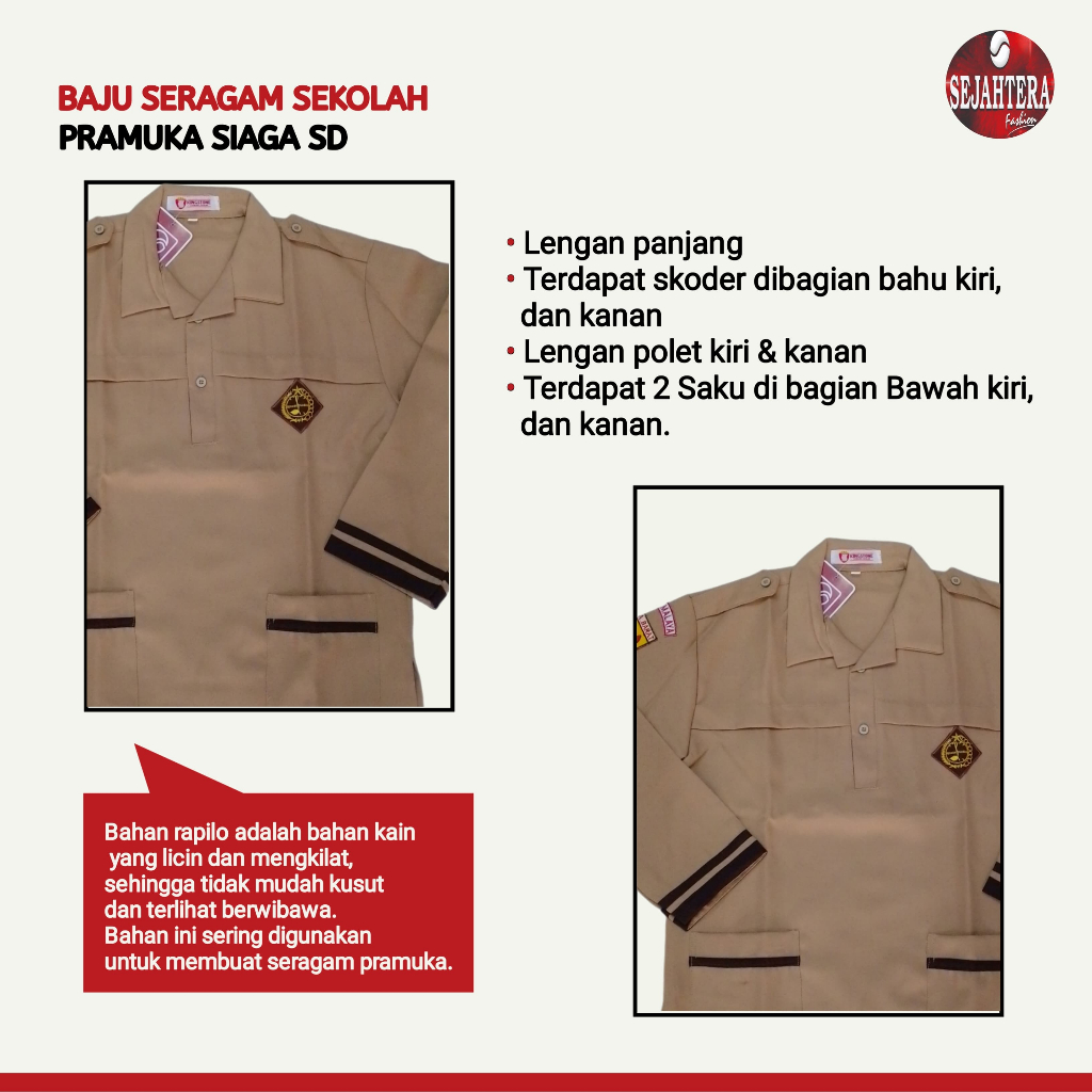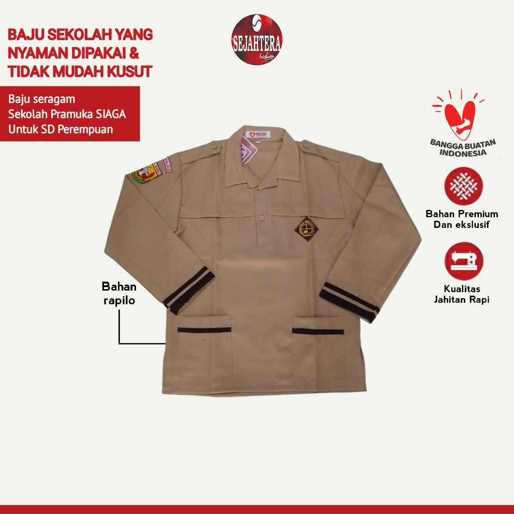 Baju Pramuka SIAGA RLO Lengan PANJANG Kemeja Seragam Sekolah SD Coklat