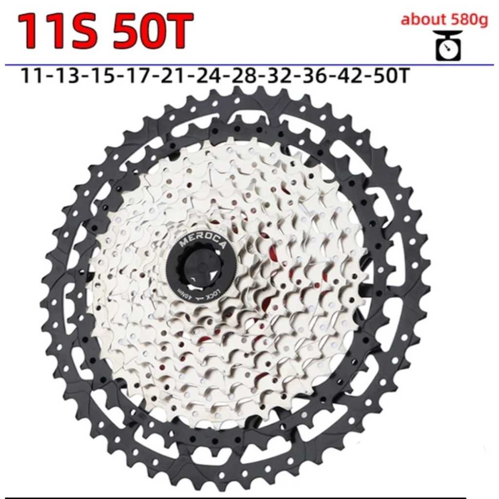 Meroca Sprocket Cassette Gear Gir Premium Wide Ratio 11 Speed 11-50T Upgrade Performa Sepeda Mtb Dan Lipat Taklukkan Tan