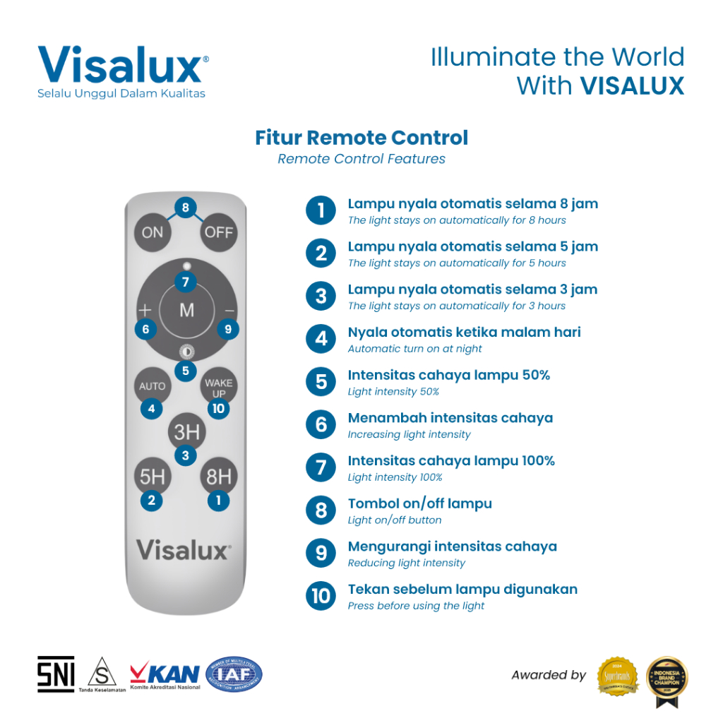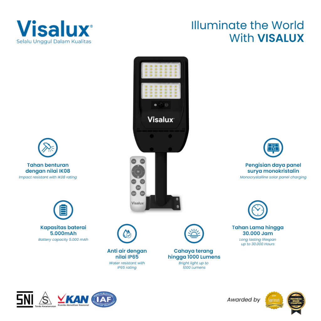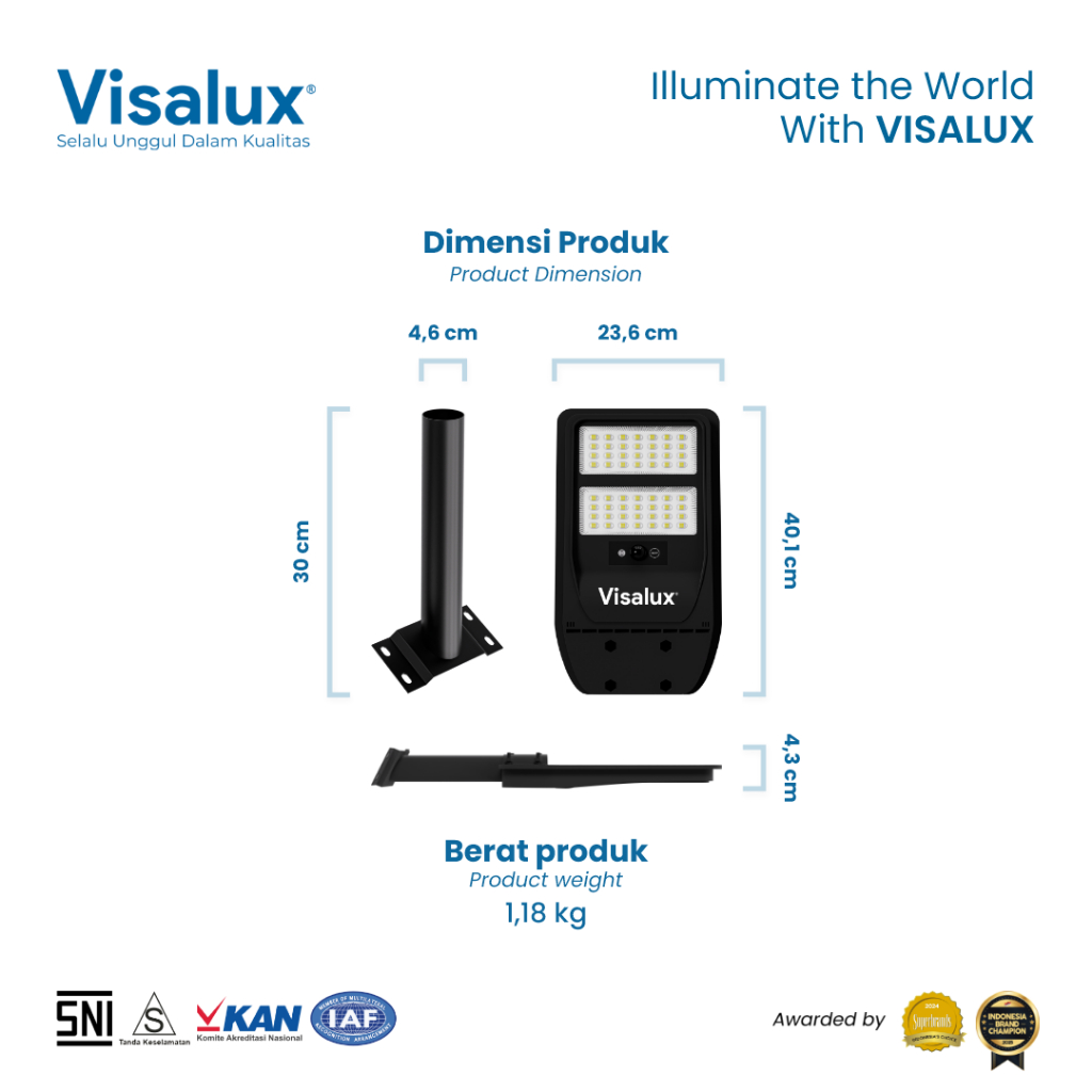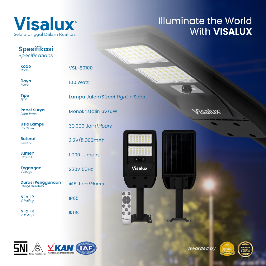 Visalux Starlight LED Solar Street Light 100W Lampu Jalan Sensor Cahaya Gerak dengan Pengisian Daya Panel Surya STARVSL80100DL