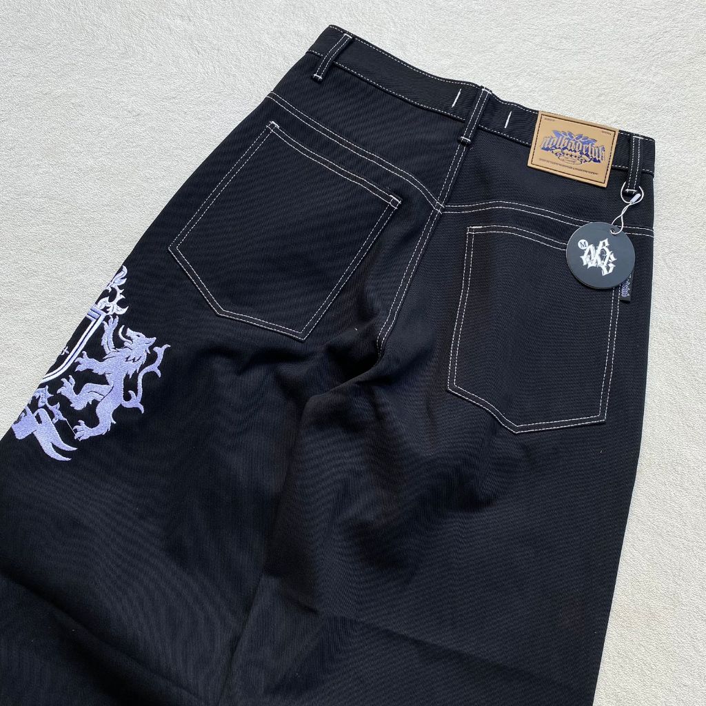 Celana Baggy Raw Denim Hitam 13,5Oz Baloon Pants Bordir Spesial Series Notbadclub