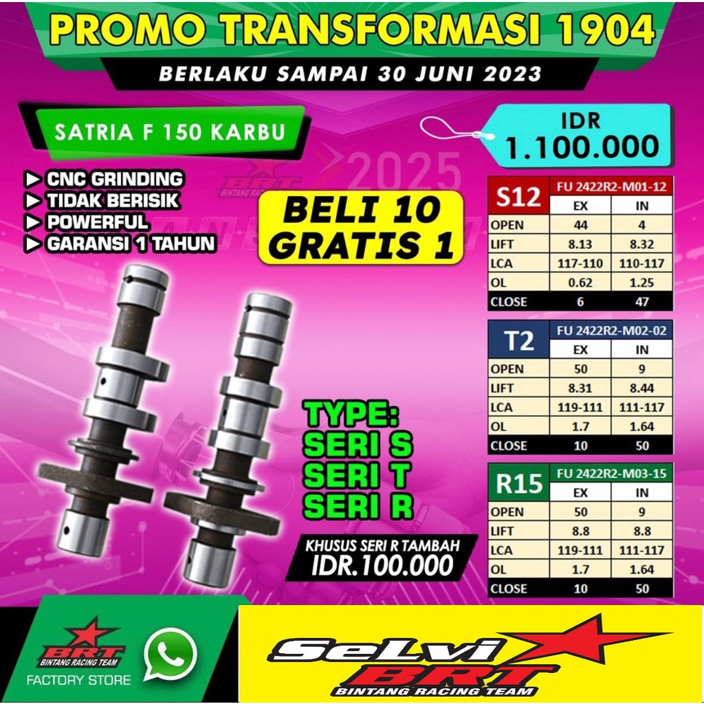 MASTER CAM BRT NOKEN AS SATRIA FU 150 KARBU KARBURATOR / SATRIA FU FI GSX 150 INJEKSI