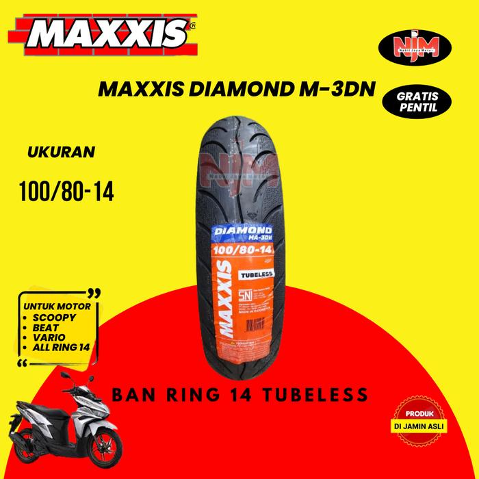 BAN MAXXIS DIAM0ND MA3DN TUBELESS BAN MOTOR MATIC RING 14 TUBLESS 70/90 80/90 90/90 80/80 90/80 ACCESSORIES KARET - MA-3DI 90/80-14