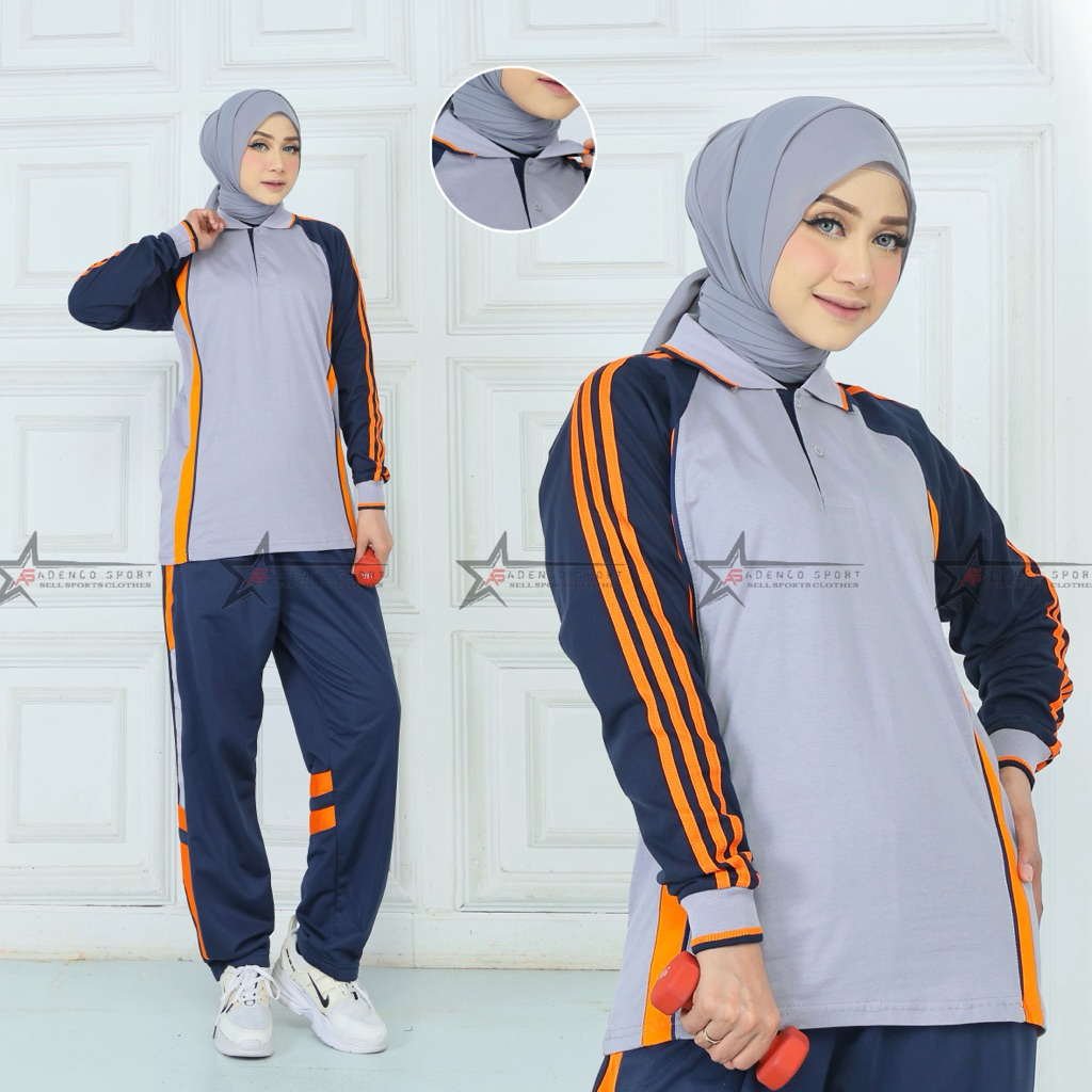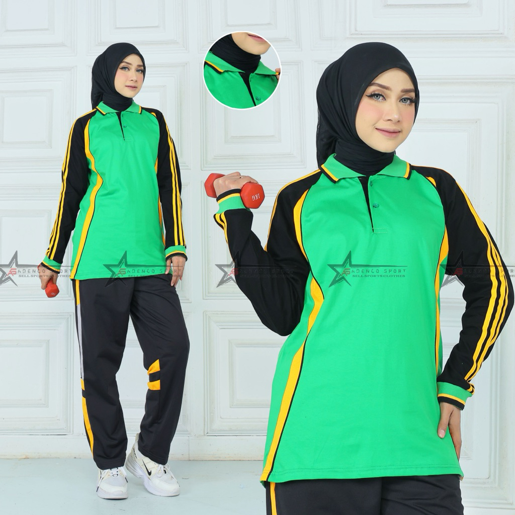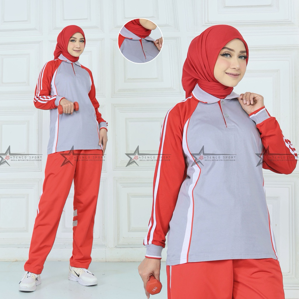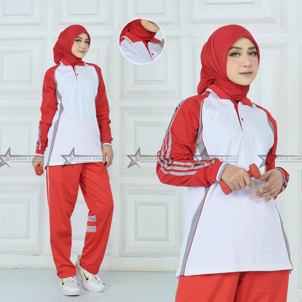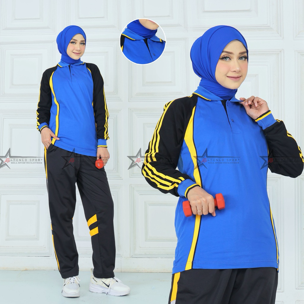 Setelan Baju Training Olahraga Senam Lengan Panjang Wanita / Seragam Stelan Training Olahraga Senam
