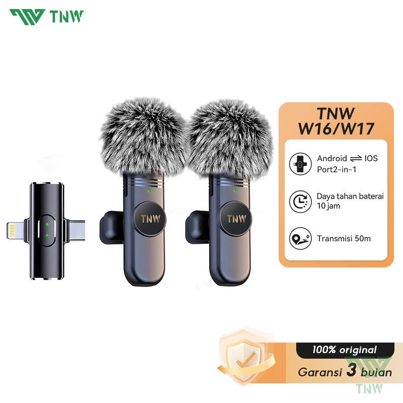 TNW W16 /W17 Wireless Microphone 2 In 1 Clip On Mic Portable Microphone Mikrofon Lavalier HP Untuk Live Streaming TikTok