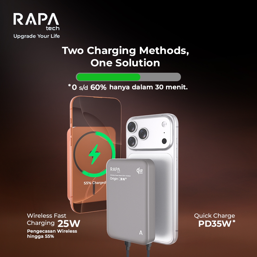 POWERBANK IPHONE 17 RAPATECH WIRELESS ORIGIN ON QI2.2 FAST CHARGING PD35W WIRELESS 25W 10.000MAH ORIGINAL OFFICIAL STORE
