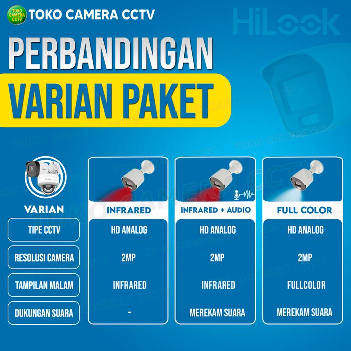 PAKET CCTV ANALOG HILOOK 2MP 4 CHANNEL 2 KAMERA - INFRARED, TANPA HARDDISK