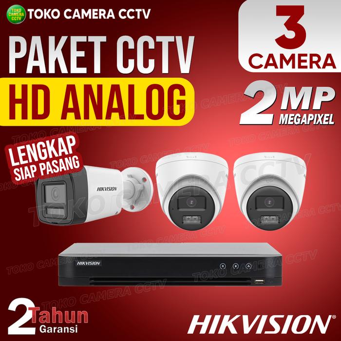 PAKET CCTV ANALOG HIKVISION 2MP 4 CHANNEL 3 KAMERA - DUAL MODE, TANPA HARDDISK