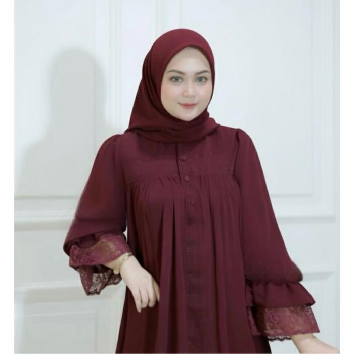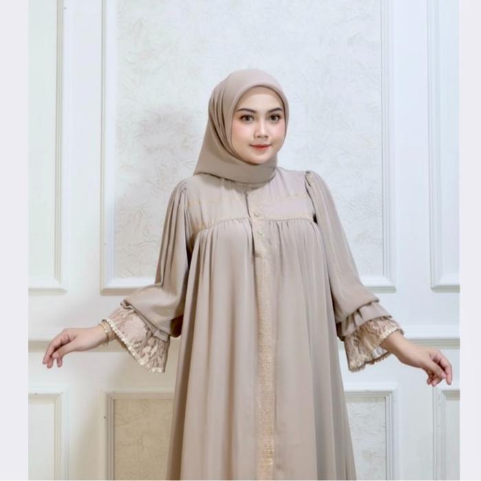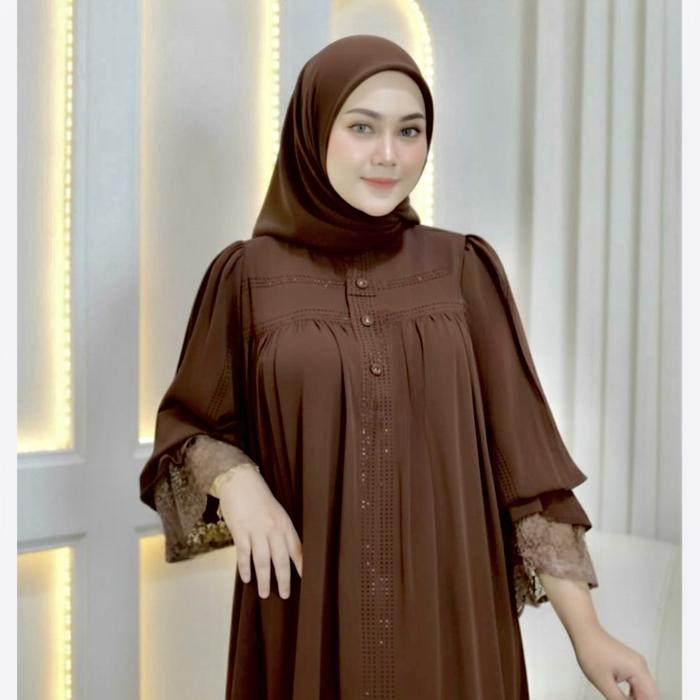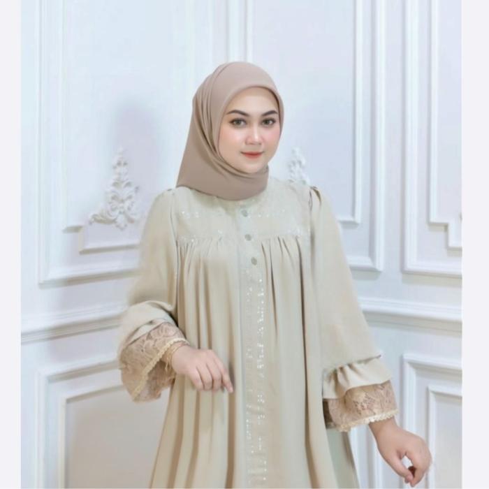 ABAYA ELISHA - GAMIS ABAYA LENGAN BALON DENGAN RENDA ELEGAN DAN PAYET BERKILAU BAHAN JETBLACK KUALITAS TINGGI NYAMAN UNTUK PENAMPILAN MEWAH - BLACK, STANDAR LD: 110