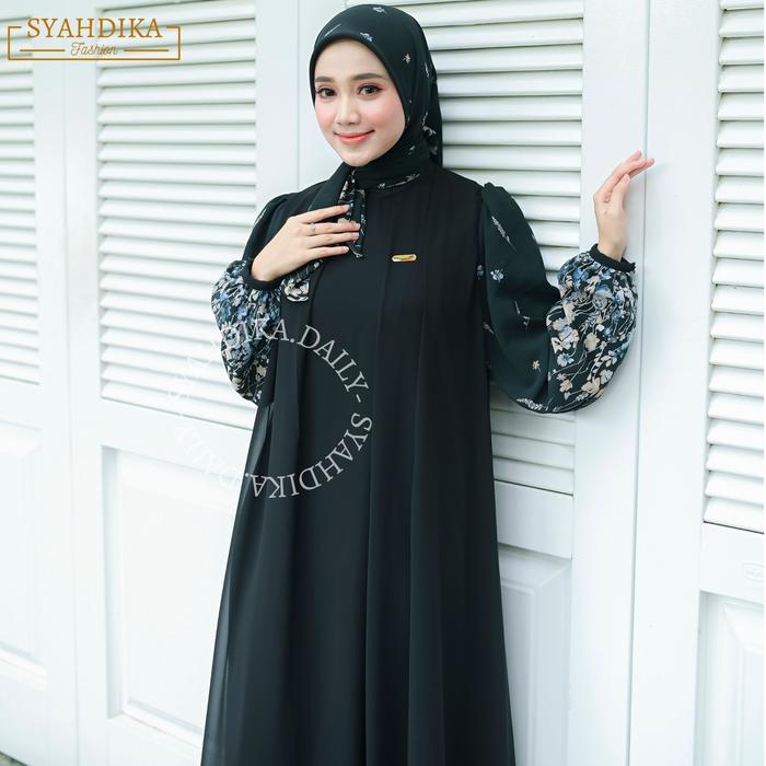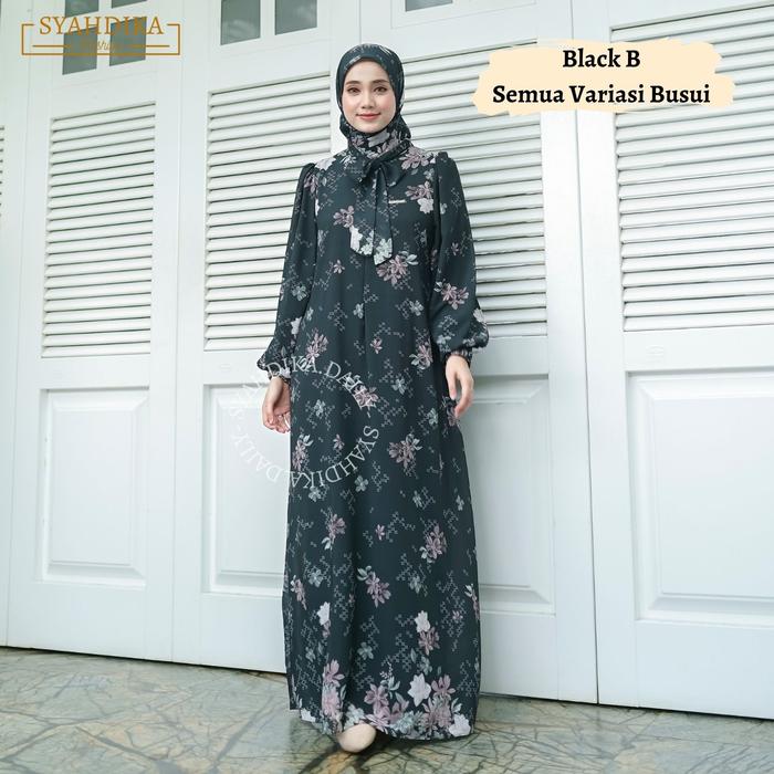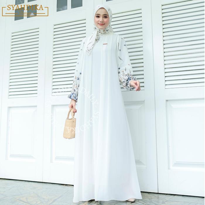 FREE HIJAB ZASKIA DRESS GAMIS WANITA KEKINIAN CERUTY BABY DOLL PREMIUM - WHITE, DRESS SET HIJAB