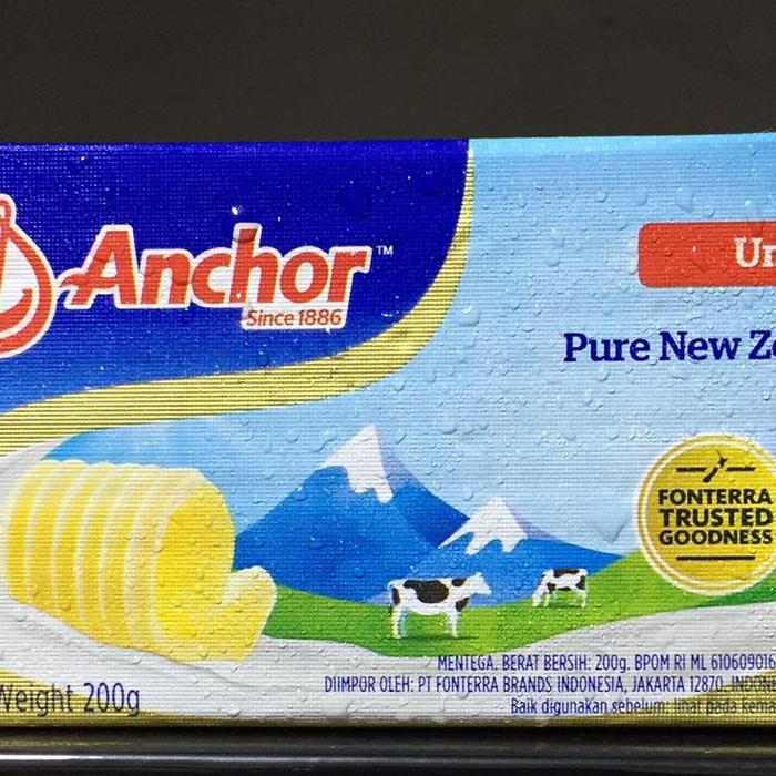 ANCHOR MENTEGA PURE NEW ZEALAND UNSALTED BUTTER 200GR - PENGIRIMAN HANYA, TIDAK TAHAN LUAR KULKAS LEBIH DARI 4 JAM