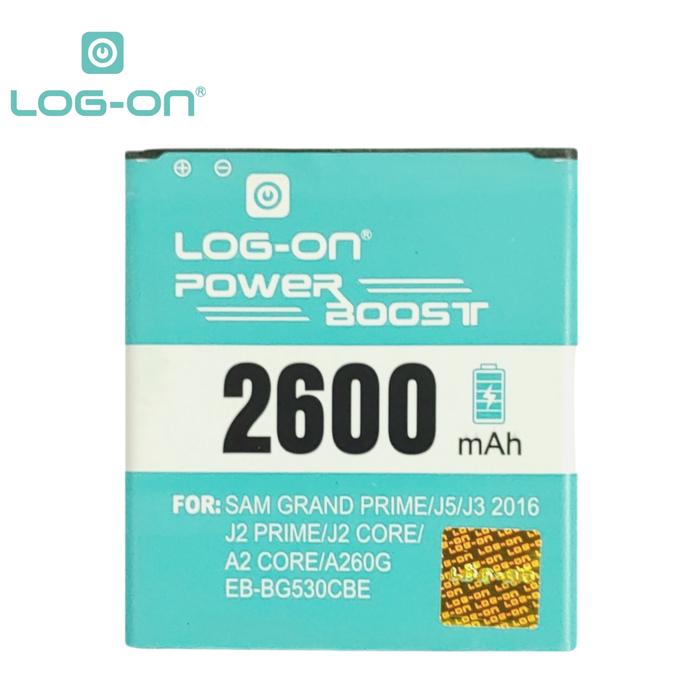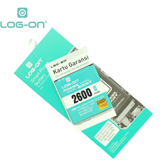 BATERAI LOG ON UNTUK SAMSUNG J2 PRIME G532 / GRAND PRIME G530 / J3 2016 J320 / J5 2015 J500 / J2 PRO / J2 CORE WER - KAPASITAS 2600MAH BATTERY BATRE - 1 TAHUN GARANSI