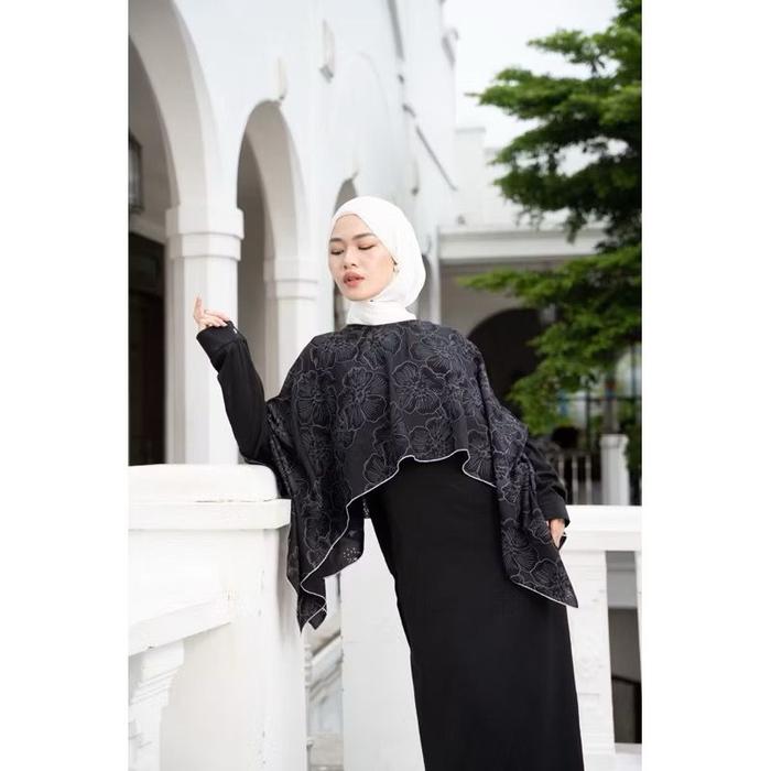 HL GAMILA DRESS BRUKAT FLOWER- DRESS KOREAN PANJANG MUSLIM RAYA EDITION REALPICT BUNGA - GAMILA BLACK, ALLSIZE