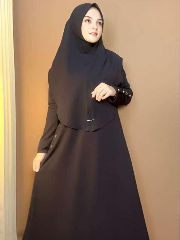 CAHAYA GALLERY - KEYRA DRESS BATWING BUTTON KNIT PREMIUM - MAXI DRESS KEKINIAN MUSLIM PANJANG DEWASA WANITA KONDANGAN CASUAL HITAM GAMIS PESTA REMAJA MEWAH LEBARAN - ABU MUDA, GAMIS SET HIJAB LD 120