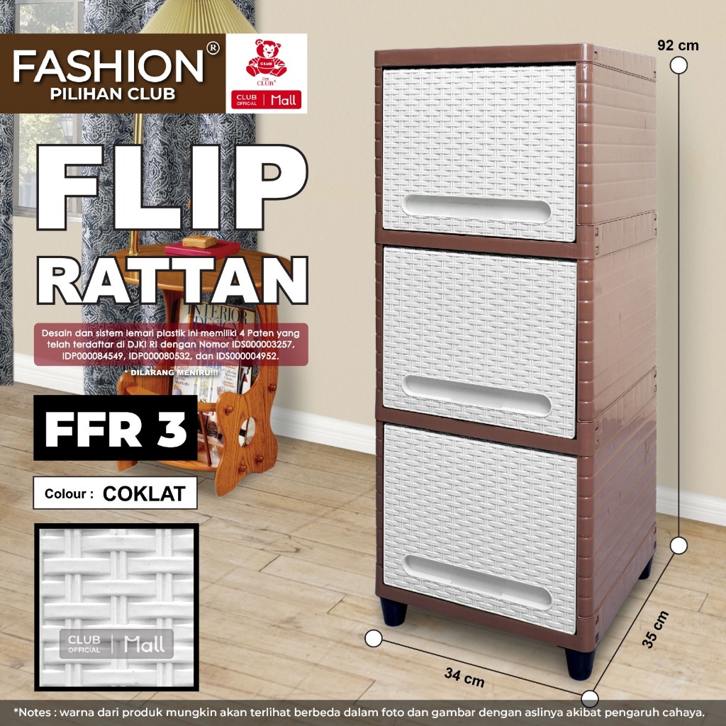 CLUB Plastik FASHION Single Susun 2 3 4 5 - Lemari Plastik Serbaguna 1 Pintu Alfa Line Rattan