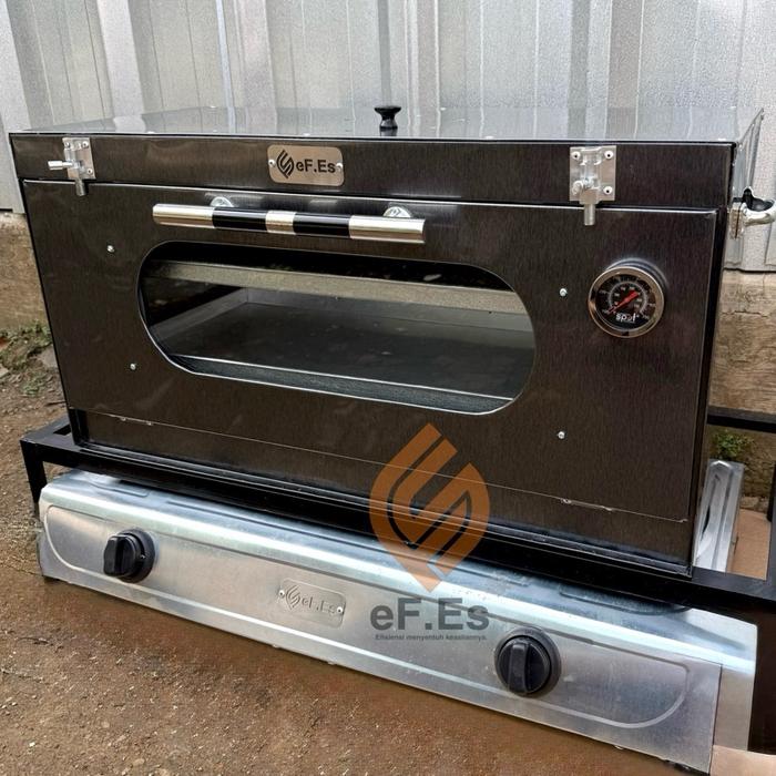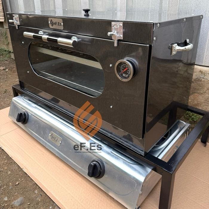 OVEN KOMR 2 TUNGKU WARNA HITAM UKURAN 65X30X34CM GRATIS LOYANG DAN PACKING KAYU - OEN 2 LOYANG