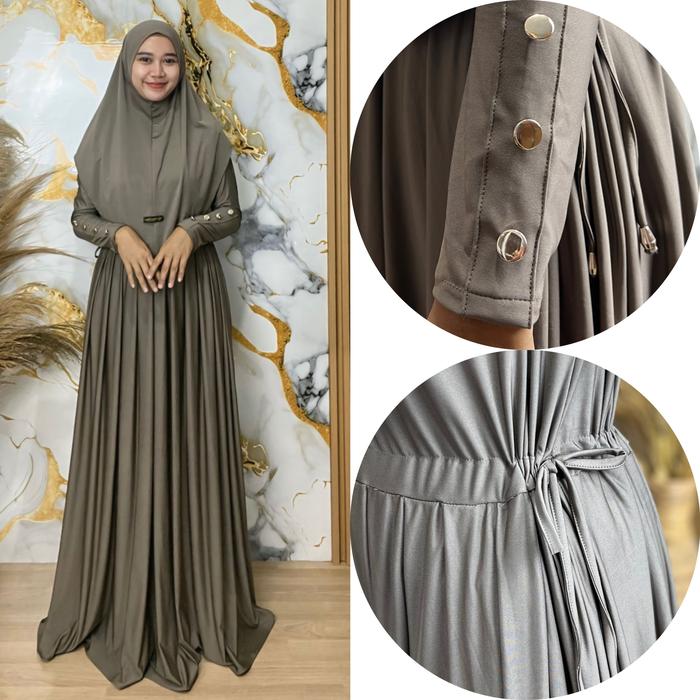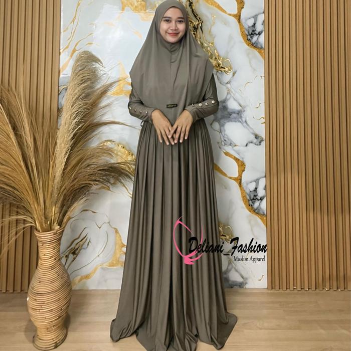 GAMIS ABAYA BAHAN JERSY INARA SET HIJAB + CIPUT TERBARU - MODEL DELIANI - WANITA, MUSLIM - ESPRESSO TANAH , LD 100