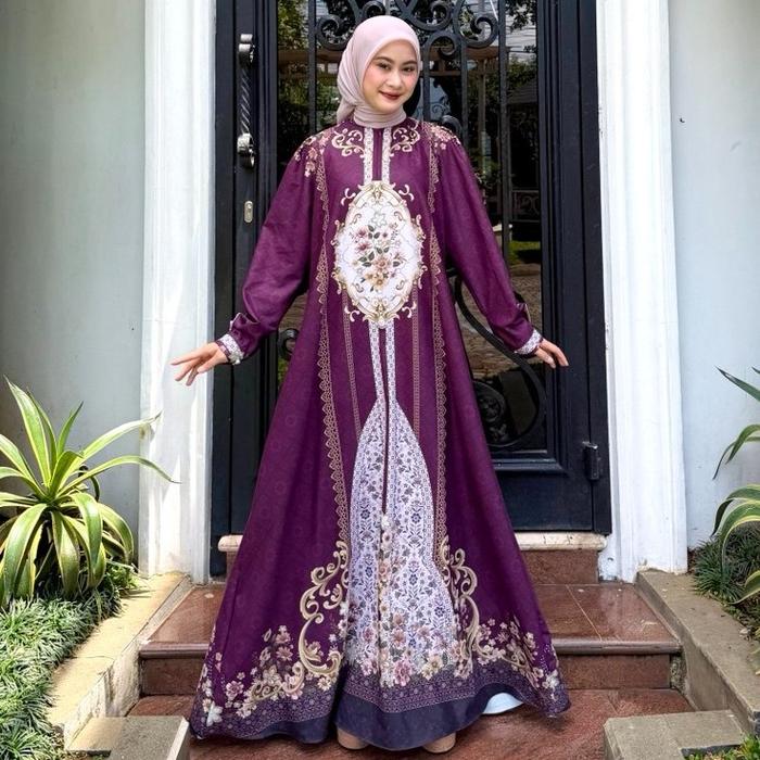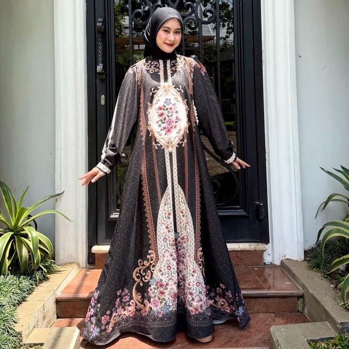 HIRAJA - GAMILA GAMIS ONLY BAHAN SABRINA DIGITAL PRINTING MEWAH ELEGAN LEBARAN 2026 COUPLE MUSLIM - GAMIS HITAM, M
